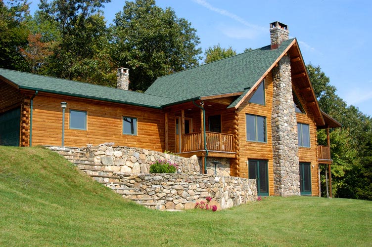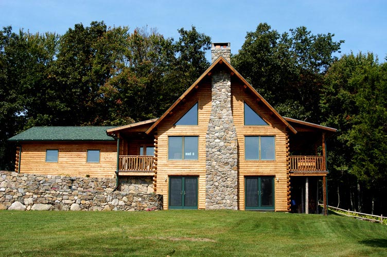 The homeowner shared two decades worth of ideas. Jane offered a few suggestions and sketched the home to scale. After a few final touches, Don forwarded the draft to Ward’s engineering department in Houlton, Maine, where they created CAD plans, then blueprints. Following revisions, Ward cut the logs to an exact fit and delivered them to the site. While Ward was cutting the logs, the homeowner went into town for her permits and hired a builder and subcontractors – all long-time residents of the area.