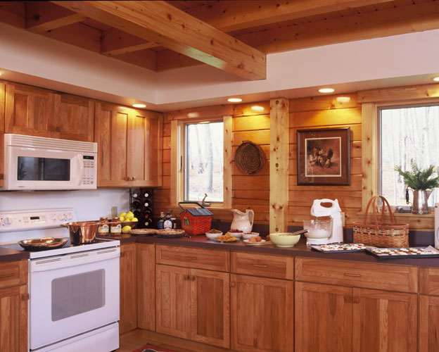 This homeowner is a quick decision-maker on most matters but took her time (more than 20 years, in fact) to consider every aspect of her custom log home. “Overall she wanted an easy-to-maintain home with a tightly designed interior,” says Jane Sharpe, co-owner with her husband Don of Design Limited Homes – a Connecticut-based representative for Ward Cedar Log Homes.