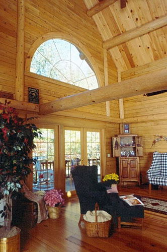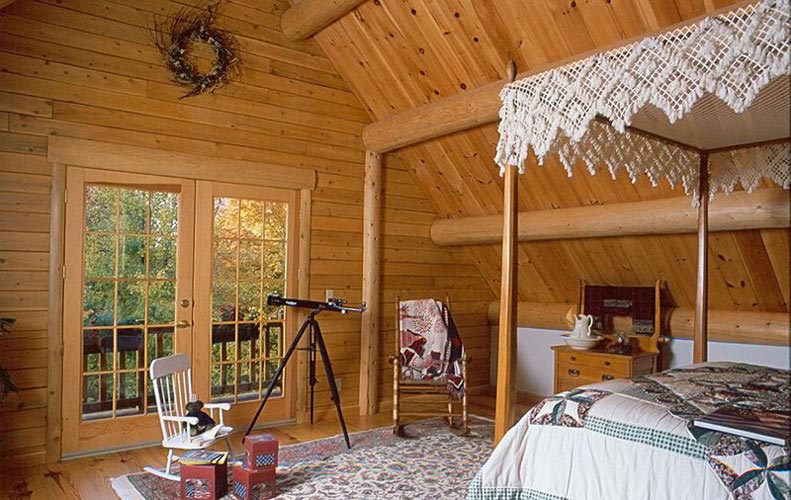 It starts with Northern White Cedar logs milled from the heartwood for the walls coupled with purlins, crafted from massive full-round, hand-peeled spruce timbers.  With its open floor plan and porch, one can almost expect the Henry Fonda and Katherine Hepburn characters to arrive any minute.  The environment is so appealing and so reminiscent of less stressful times that today, 95 percent of all Ward Cedar Log Homes are year-round residences.