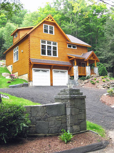 Ward's Hybrid System provides the look of a solid log home while providing a super insulated R-30 or more home. And since only the walls are constructed differently than other Ward log homes, the rest of the log home package remains the same. A hybrid log home offers more flexibility to let your creative ideas come together. You have the ability to combine many features such as logs, log siding, stone, T&G boards, round or square timbers, stucco, drywall, and other siding accents.