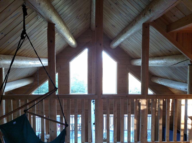 The Madison has an open Living, Dining, and Great Room with enough space to entertain your family and guests. The Kitchen features round ceiling joists.