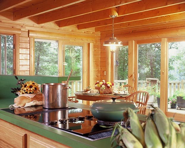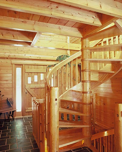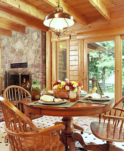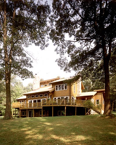 The Walton's Mountain plan's striking contemporary styling allows large windows to dominate one side of the home, letting light flood the interior. Ample deck space and a screened porch allow families to enjoy the outdoors in comfort. The first floor features a sunken living room and a charming kitchen and dining room. The master suite has his and hers walk-in closets. A spiral staircase gracefully extends to the second floor where there are two additional bedrooms, a full bath and an open loft overlooking the living area.