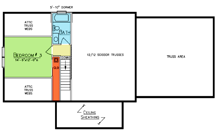 • 12/12 Attic trusses bedroom end