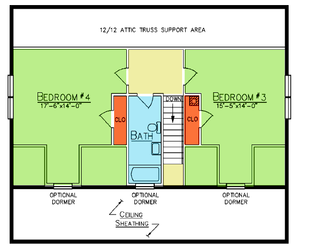 The Cedar Lane is an affordable family home that you can really make your own. Choose our optional full-length porch to create room for large family gatherings. Inside, enjoy a spacious living room/dining room with attached kitchen, four bedrooms and two full baths. The optional dormers on the front of the home add elegance to its exterior.