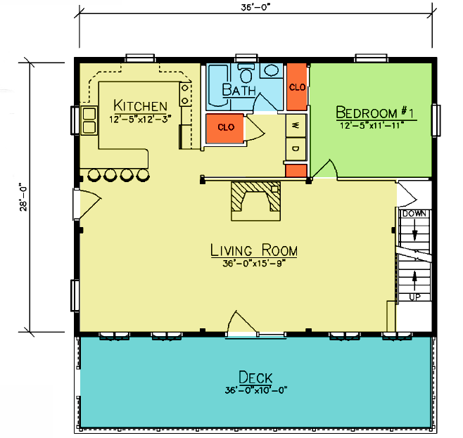 The Hickory is a 1,644 square foot log home that is a comfortable-styled home offering many extras. The front deck coupled with numerous windows and skylights allow you to enjoy the outdoors while light floods the interior of your home. The Hickory also features a full kitchen with a snack bar and cathedral ceiling living/dining space. The first-floor bedroom is located adjacent to a full bath that has ample storage space and laundry facilities. The bedrooms on the second floor share a full bath and have their own walk-in closet space. A charming full balcony looks down on the first floor below.