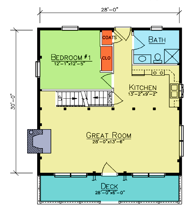 The Riverton is a 1,105 square foot cedar log home where the chalet-style home’s windows and deck space allow you to take advantage of the scenery.  It would be nicely situated in the mountains as a vacation retreat or in the suburbs as an efficient year-round home.  When you enter the Riverton, you are greeted by the impressive cathedral ceiling, great room, a wonderful place to entertain and have family gatherings.  A spacious kitchen abuts a full bath with a bedroom tucked into the corner of the first floor.  A bedroom located on the second floor completes the home.