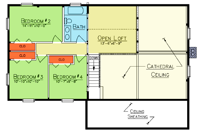 The Vancouver is a versatile home that can easily accommodate a large family or many guests with ease and comfort. Stepping inside the home from the cozy front porch, you discover a large open kitchen, dining and living areas with cathedral ceiling. The spacious master bedroom with its own full bath and walk-in closet is located slightly apart from the living space, creating a feeling of privacy. On the second floor, there are three additional bedrooms, a full bath, and an open loft.